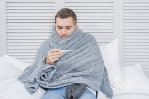 sick-man-wrapped-shawl-looking-thermometer